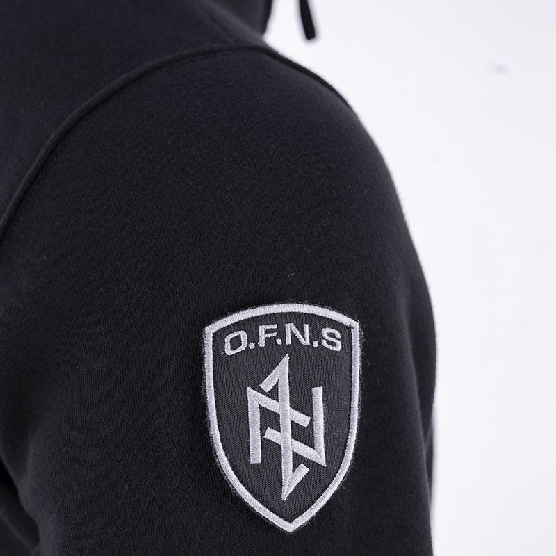 Sweatjacken mit elastischem Bund und zwei Fronttaschen. Hergestellt aus hochwertiger Baumwolle. Auf der Brust und auf dem rechten Ärmel ist mit Hilfe von Klettverschluss ein Patch mit dem „O.F.N.S”-Logo befestigt.