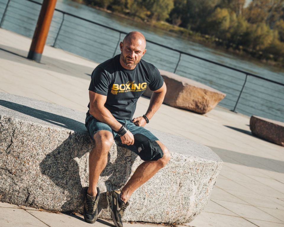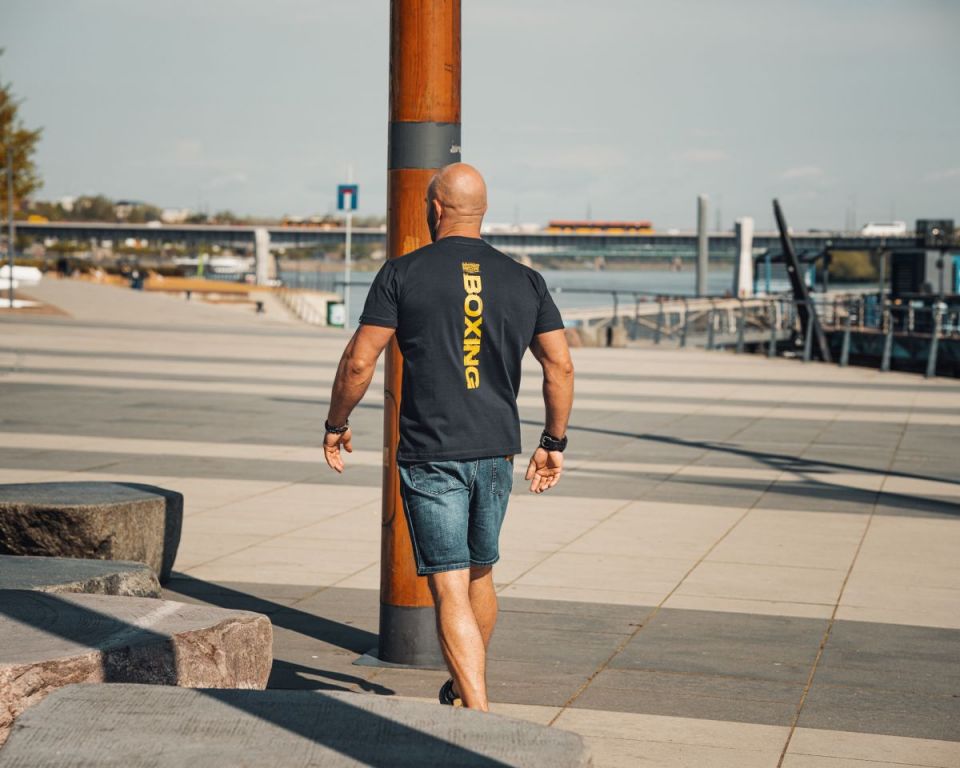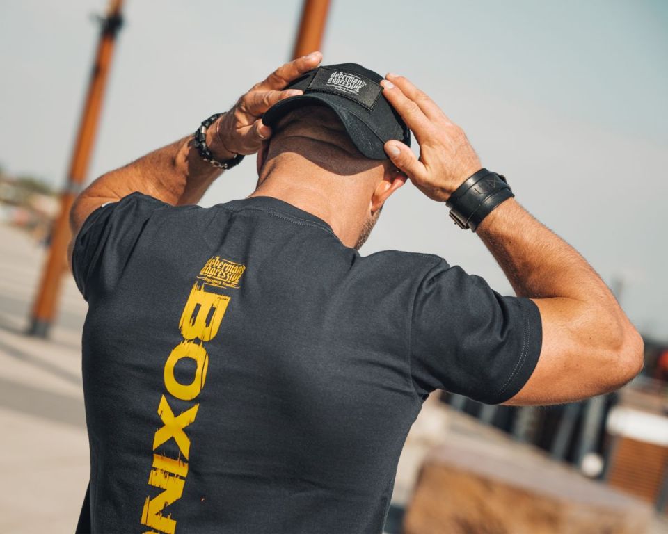Klassisches Herren-T-Shirt aus hochwertiger Baumwolle mit kurzen Ärmeln.Auf dem linken Ärmel befindet sich ein kleiner Patch mit dem Doberman´s Aggressive-Logo. Vorder- und Rückseite sind mit dem Aufdruck Boxing versehen.