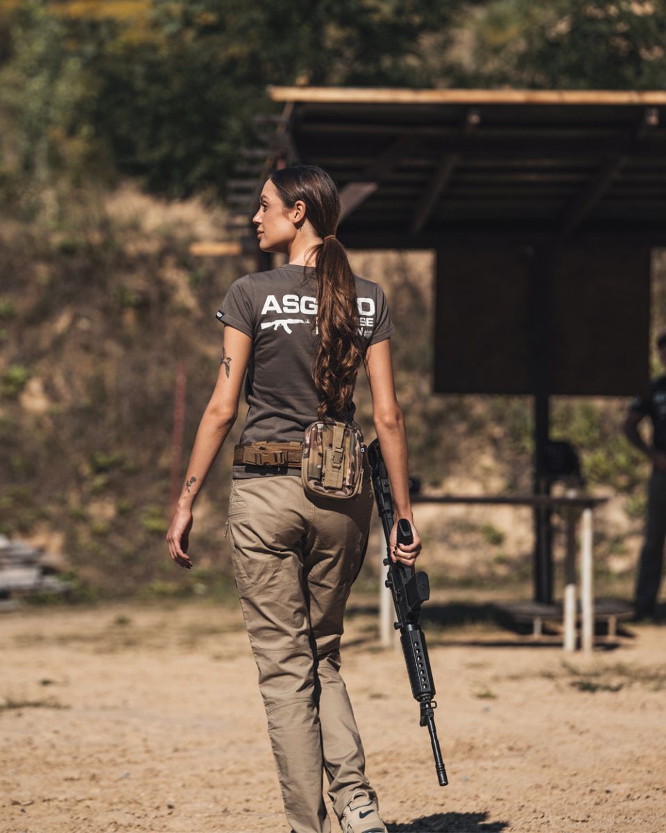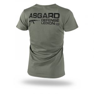 Damenshirt in körpernaher Passform. Auf dem linken Ärmel befindet sich ein kleiner Patch mit dem Doberman´s Aggressive-Logo. Auf der Rückseite befindet sich ein Druck „Asgard Defense Legion”.