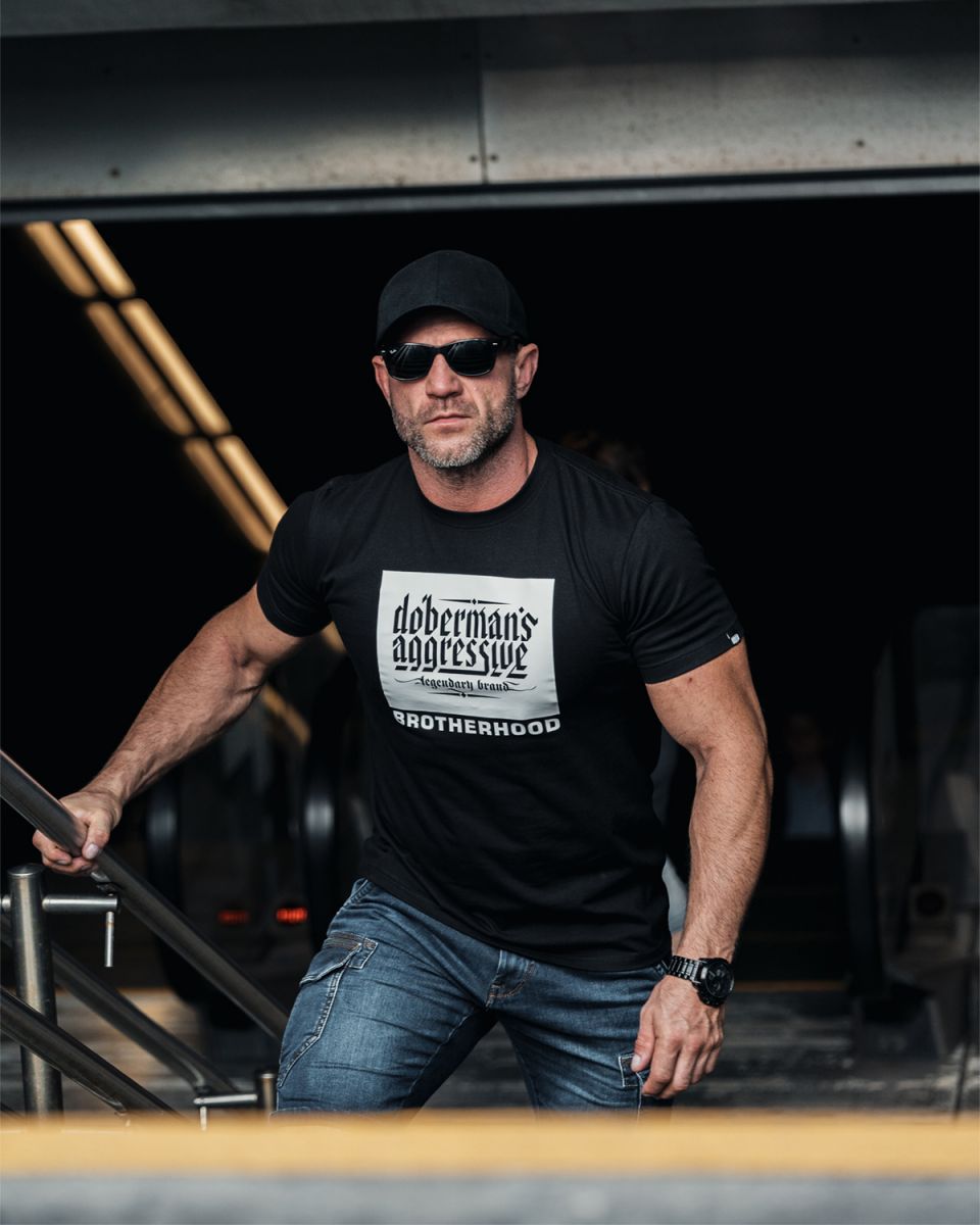 Sweatshirt aus 100 % Baumwolle. Der Saum und die Ärmel sind mit breitem elastischem Bund versehen. Am linken Ärmel befindet sich ein kleines Dobermans Aggressive Logo. Auf der Brust befindet sich ein einfaches Motiv: Doberman´s Aggressive Brotherhood.