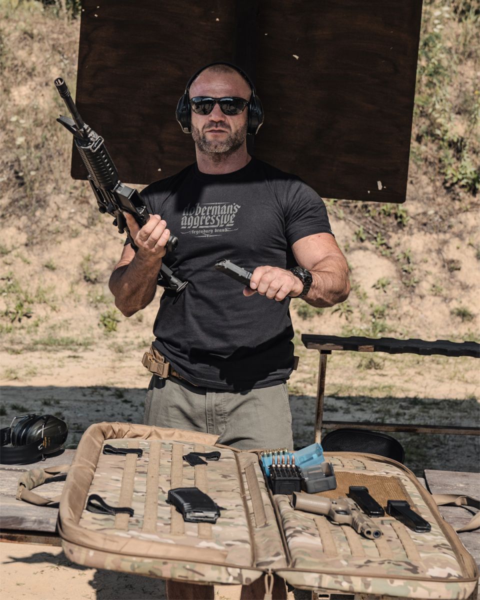 Sweatshirt aus 100 % Baumwolle. Der Saum und die Ärmel sind mit breitem elastischem Bund versehen. Am linken Ärmel befindet sich ein kleines Dobermans Aggressive Logo.