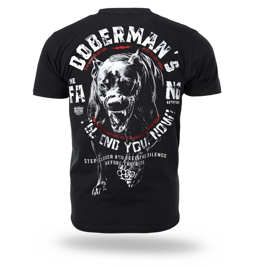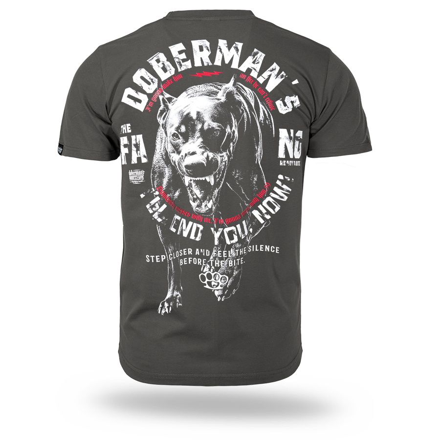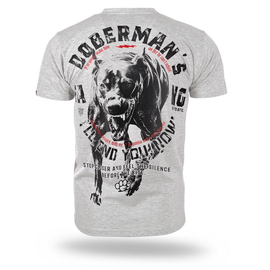 Klassisches Herren-T-Shirt aus hochwertiger Baumwolle mit kurzen Ärmeln.Auf dem linken Ärmel befindet sich ein kleiner Patch mit dem Doberman´s Aggressive-Logo.
