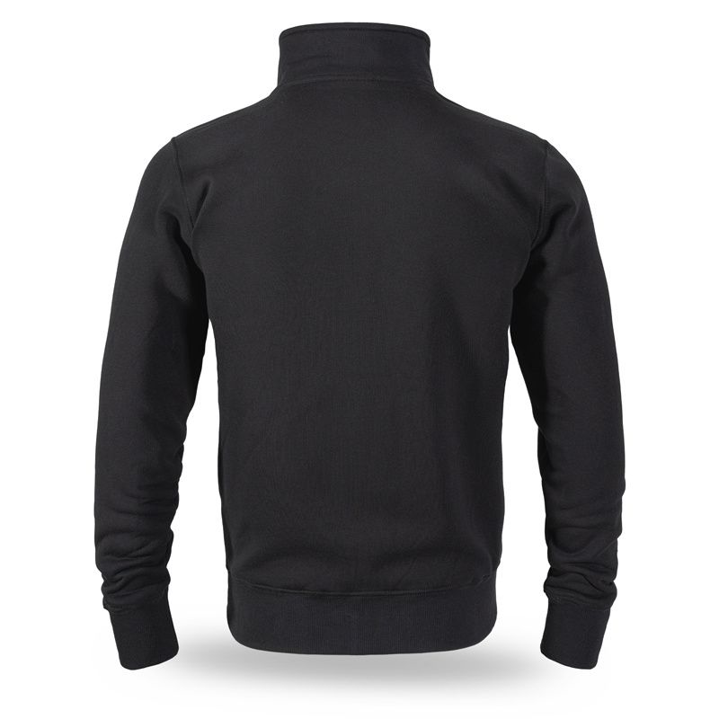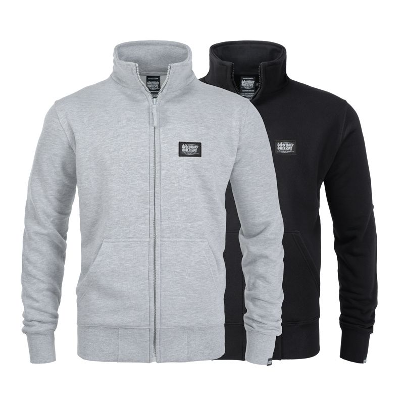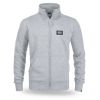 Klassische Sweatjacke aus hochwertiger Baumwolle mit Reißverschluss und Stehkragen, versehen mit elastischen Bündchen und zwei Fronttaschen. Auf der Brust befindet sich ein kleiner, dezenter Aufnäher mit Logo.