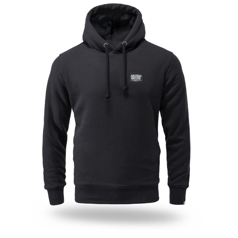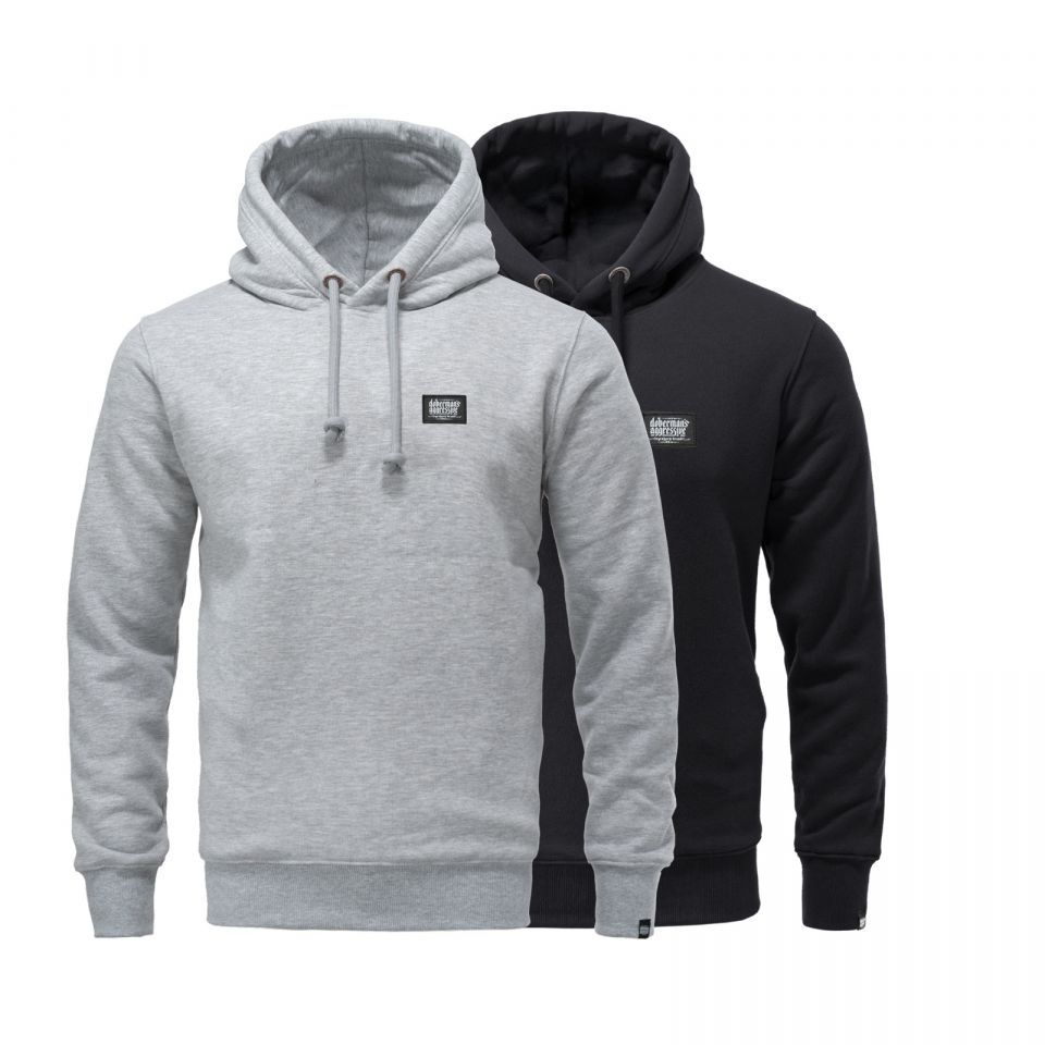 Ein Hoodie von Dobermans Aggressive aus angenehmer Baumwolle mit breitem elastischem Bund an den Ärmeln und am Saum. Auf der Brust befindet sich ein kleiner, dezenter Aufnäher mit Logo.