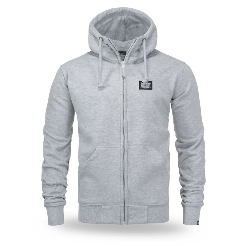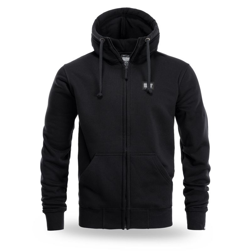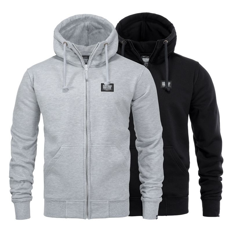 Hoodie aus hochwertiger Baumwolle mit Reißverschluss, versehen mit elastischen Bündchen und zwei Fronttaschen. Auf der Brust befindet sich ein kleiner, dezenter Aufnäher mit Logo.