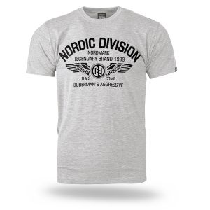 Klassisches Herren-T-Shirt aus hochwertiger Baumwolle mit kurzen Ärmeln.Auf dem linken Ärmel befindet sich ein kleiner Patch mit dem Doberman´s Aggressive-Logo. Auf der Brust mit großer Aufschrift Nordic Division.