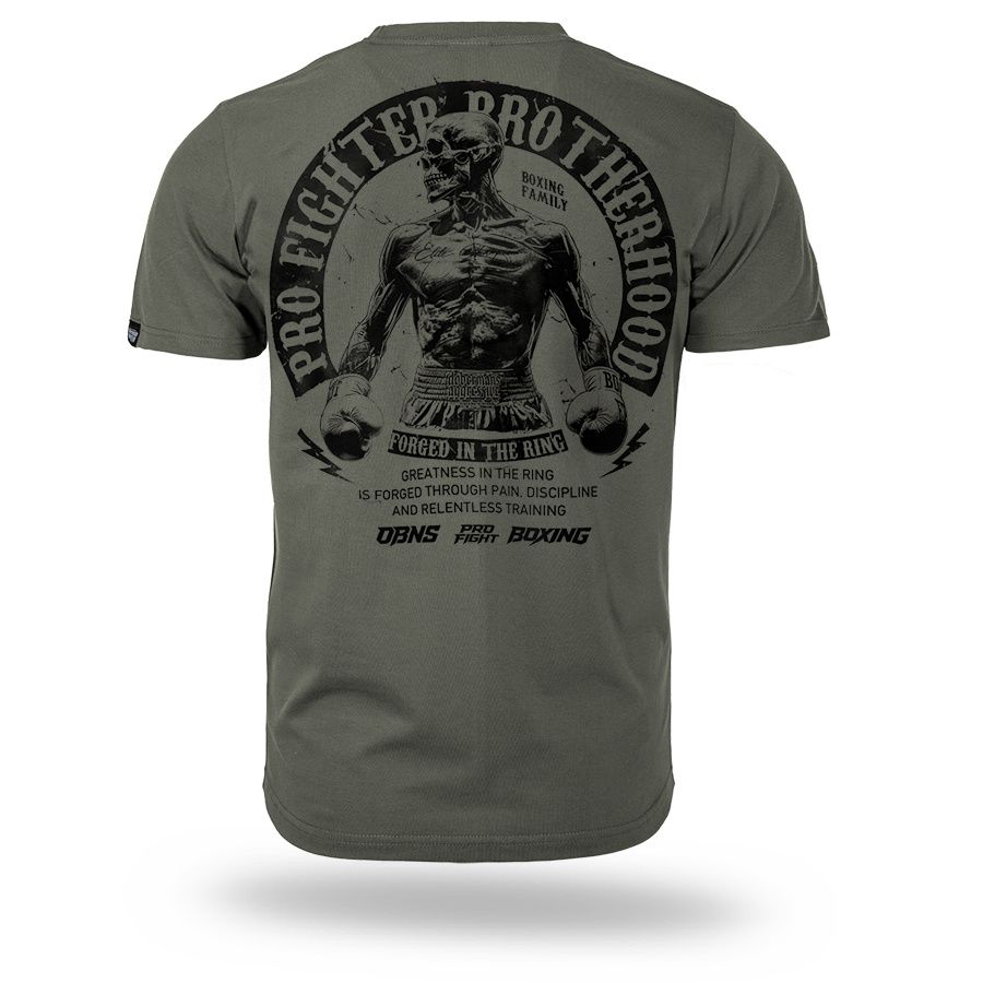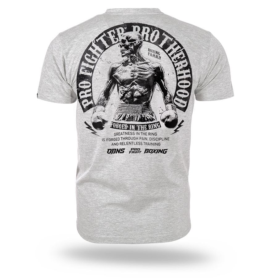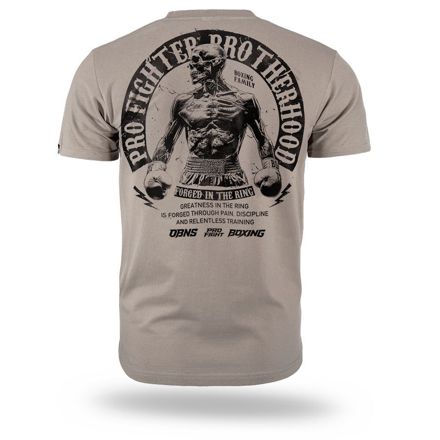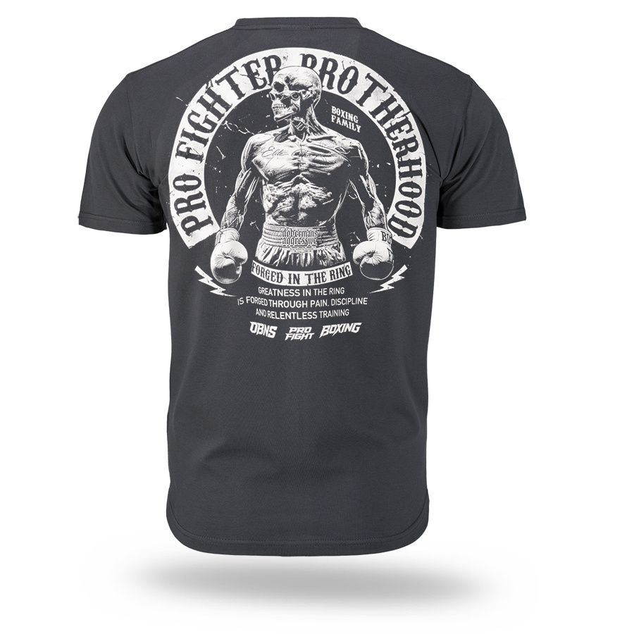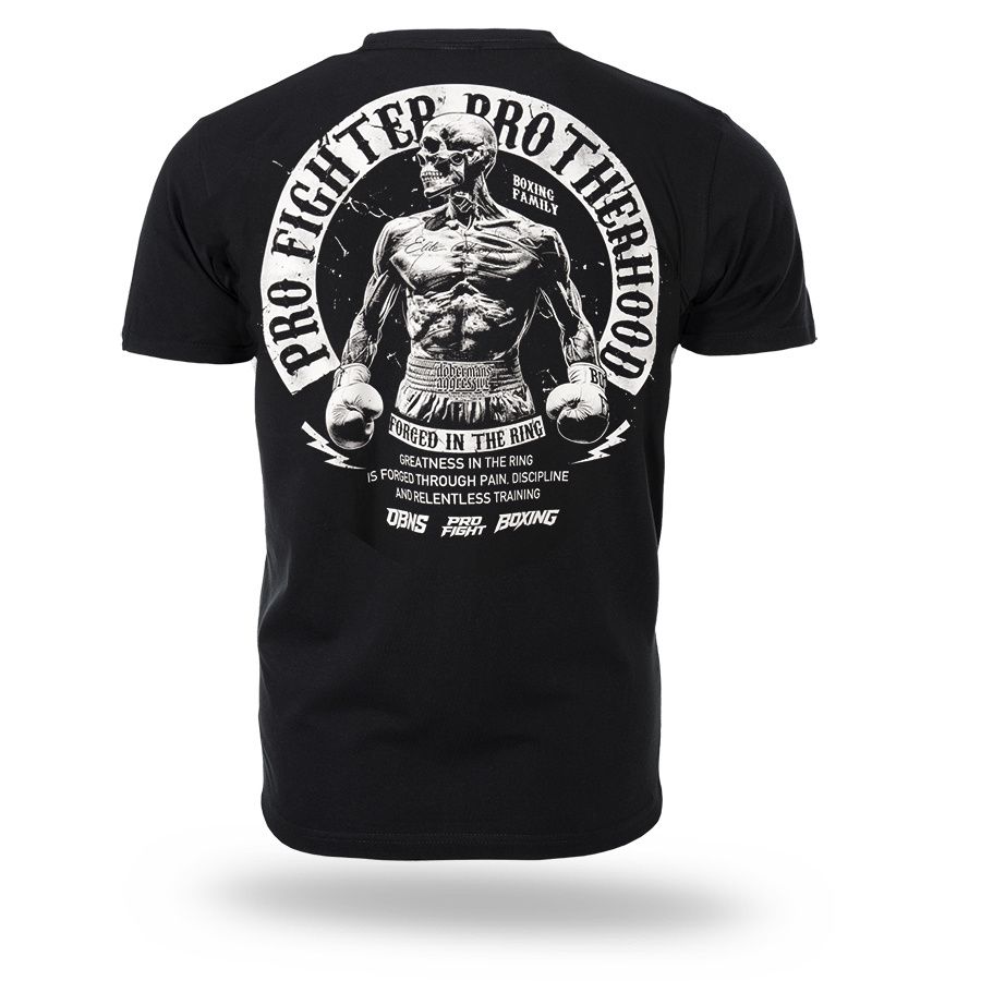 Klassisches Herren-T-Shirt aus hochwertiger Baumwolle mit kurzen Ärmeln.Auf dem linken Ärmel befindet sich ein kleiner Patch mit dem Doberman´s Aggressive-Logo. Vorder- und Rückseite sind mit dem Aufdruck Pro Fighter Brotherhood – Forged in the Ring versehen.