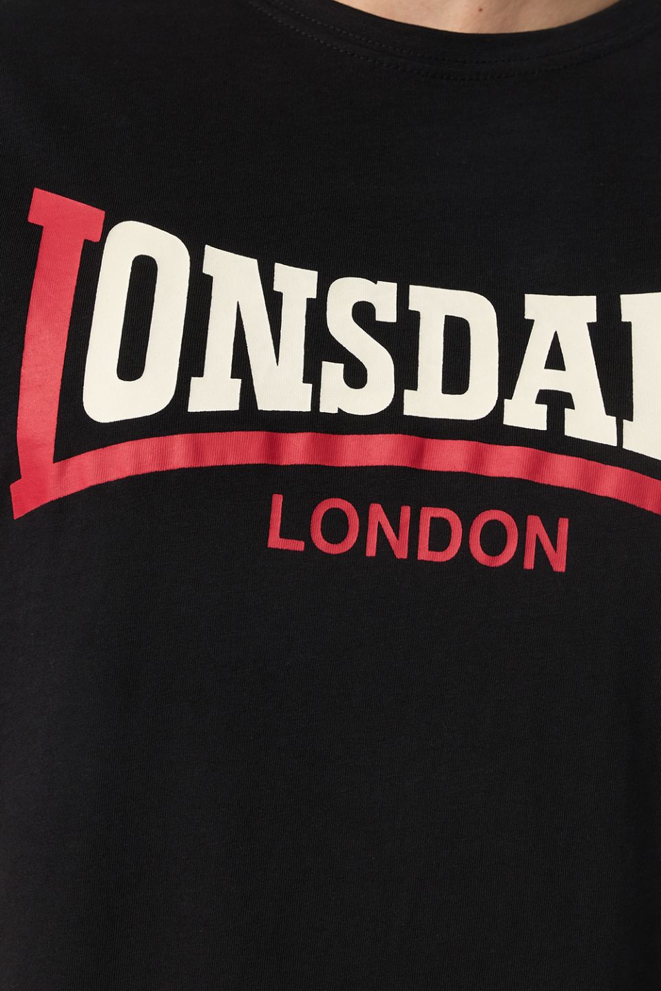 - T-Shirt mit zweifarbigem Logo-Schriftzug auf der Brust und einer farblich abgesetzten Ziernaht im Bereich der Schulter.