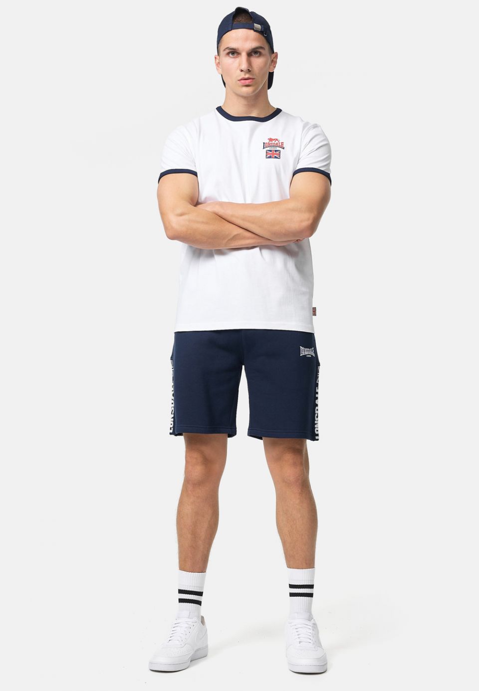 - Rundhalsshirt mit kleinem 3D-Gummi-Druck auf der linken Brust. Der Union Jack des Prints wiederholt sich an der Seitennaht in Form eines gewebten Labels. Die Bündchen am Halsausschnitt sowie den Ärrmeln sind farblich abgesetzt.