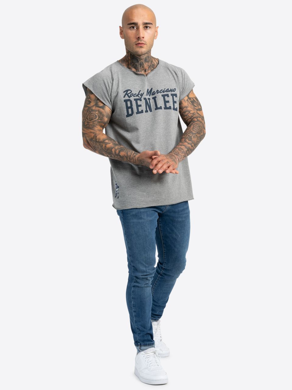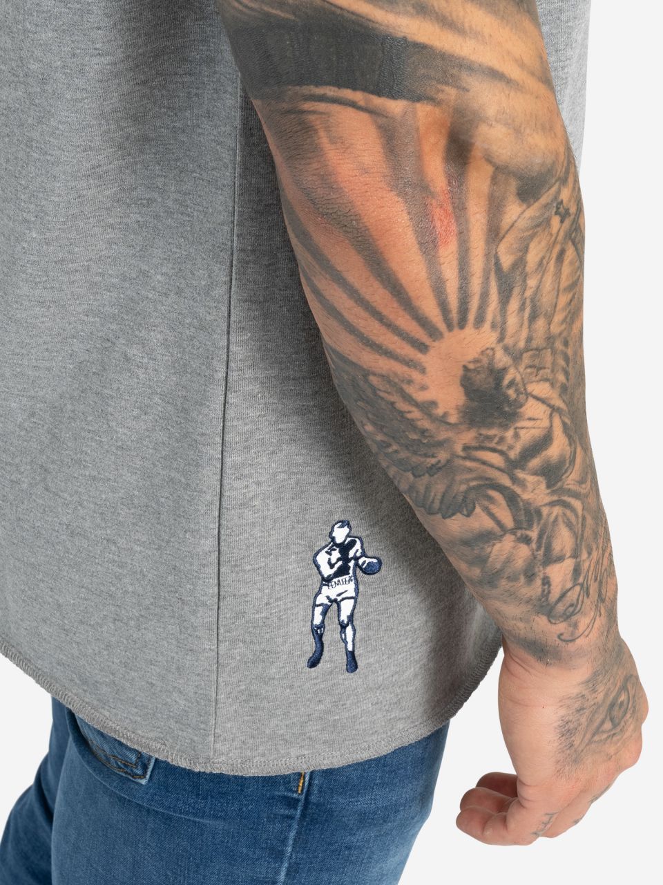 - t-shirt mit kurzen Raglanärmeln und großem Druck auf der Brust. Am unteren Saum befindet sich eine Stickerei in Form eines Boxers